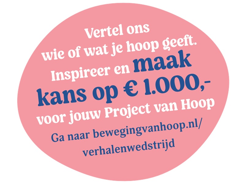 Bemoedigende woorden toen je in de put zat. Die jongen met krullen, die je in de supermarkt hielp. De buurvrouw die jouw hondje uitlaat. Henk die elke week een kopje koffie komt drinken en daardoor zonder dat hij het beseft je dagen lichter maakt. Die nieuwe hobby waar je samen met anderen veel plezier uithaalt. Hoopvolle verhalen als deze staan centraal tijdens een wedstrijd die de Rooms-katholieke Kerk heeft uitgeschreven aan het einde van dit Heilig Jaar, waarin ‘hoop’ een centraal thema is.