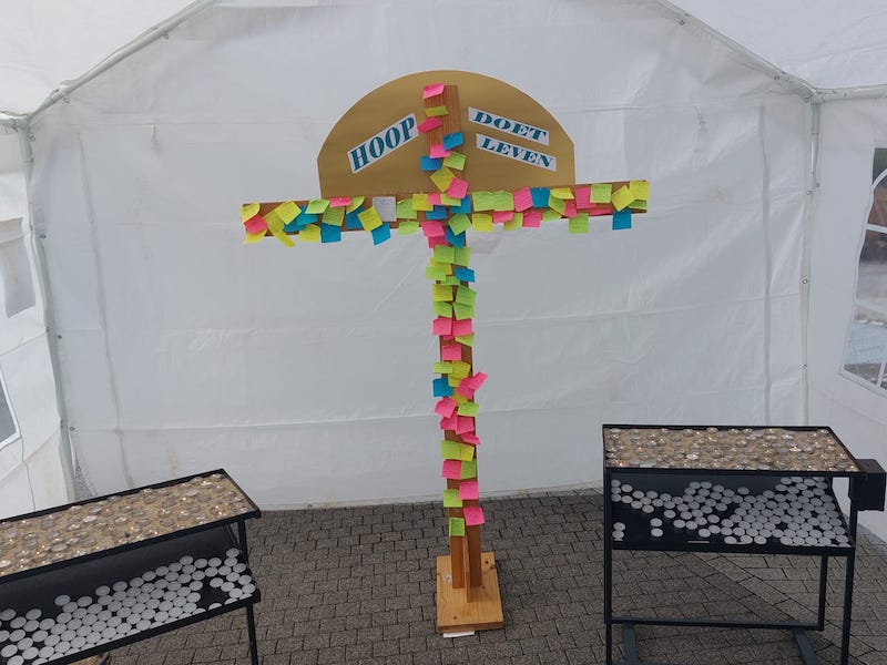 In de “coronatijd” heeft toenmalige kapelaan Carlos Martinez samen met een aantal parochianen op Goede Vrijdag het initiatief opgezet om op de Nieuwe Markt kaarsjes uit te delen en samen het gesprek aan te gaan.