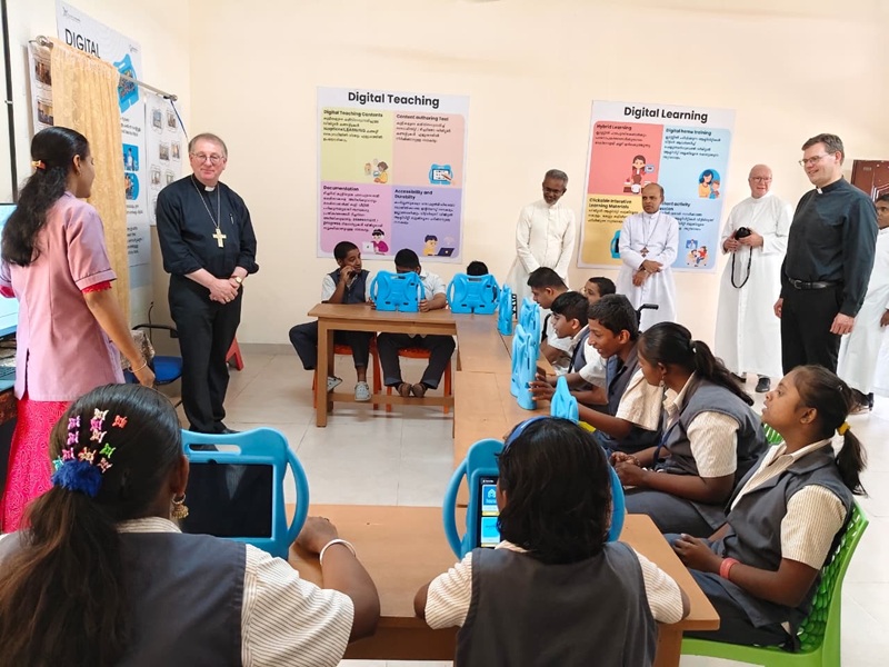 In de ochtend hebben we als laatste project in het bisdom Kanjirapally Angels’ Village bezocht, een huis voor mannen en vrouwen, jongens en meisjes met een meervoudige beperking. We werden welkom geheten en enthousiast ontvangen door een muziekband en een dansact door vijf meisjes van wie twee met het syndroom van Down. We bezochten een aantal schoolklassen. Er wordt serieus en met veel geduld geïnvesteerd in de mens.