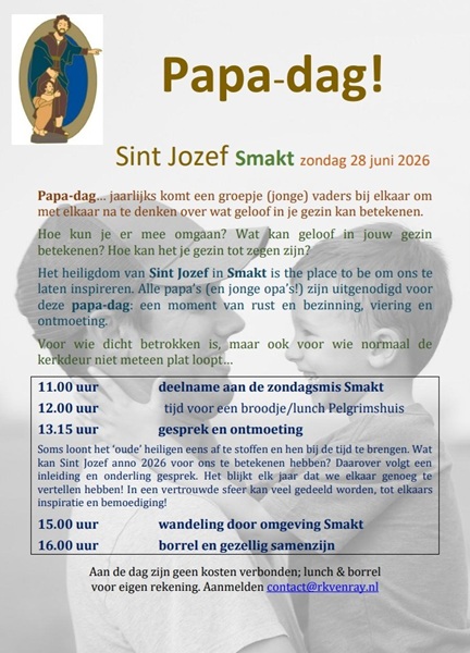 Papa-dag… jaarlijks komt een groepje (jonge) vaders in Smakt bij elkaar om met elkaar na te denken over wat geloof in je gezin kan betekenen. Hoe kun je er mee omgaan? Wat kan geloof in jouw gezin betekenen? Hoe kan het je gezin tot zegen zijn?